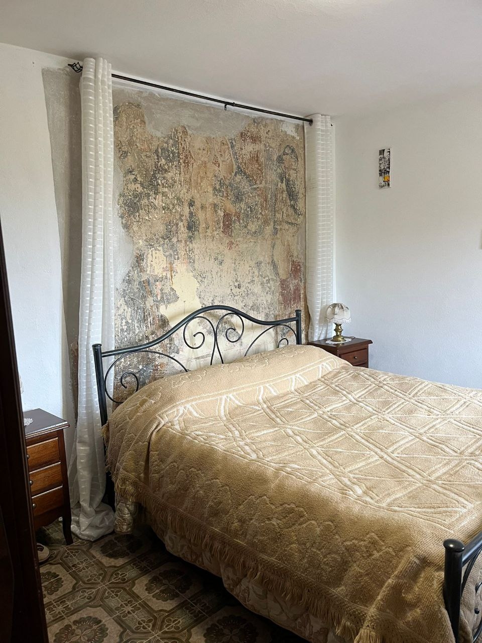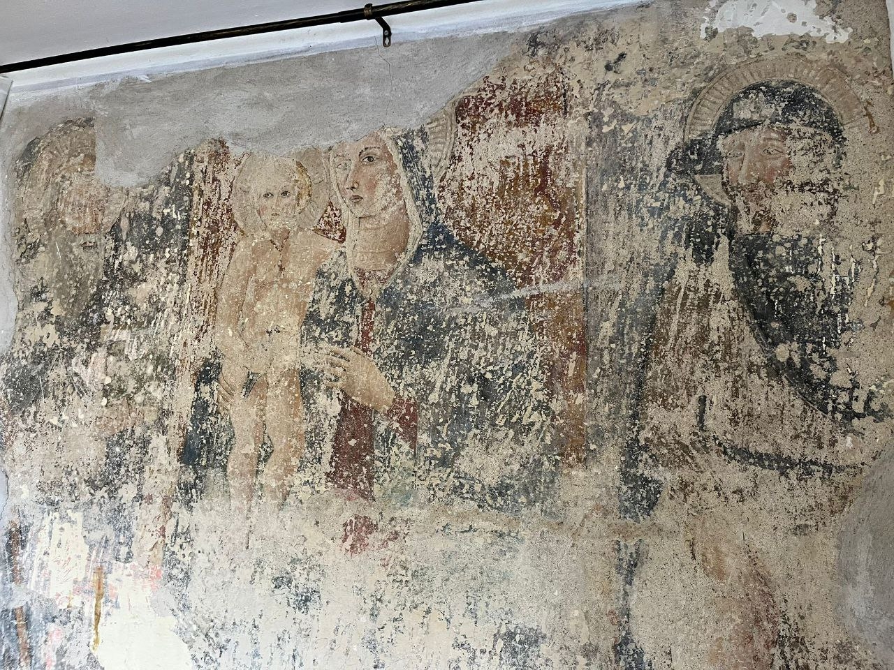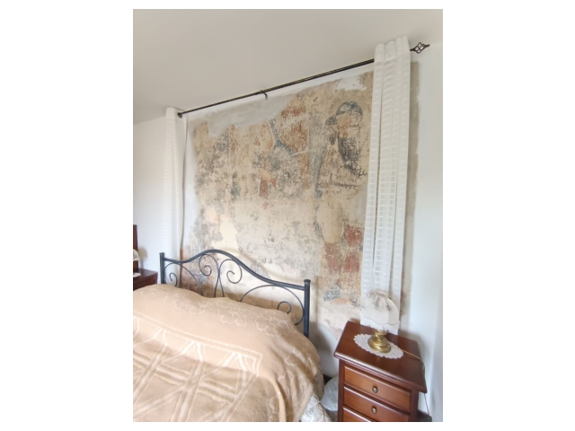Elemento di straordinario pregio è la presenza, in una delle camere matrimoniali, di un affresco del XV secolo raffigurante la Madonna col Bambino con i Santi Antonio Abate e San Rocco, di dimensioni 215 x 242 cm, dettaglio unico che rende questa proprietà un’autentica rarità per appassionati e intenditori d’arte.