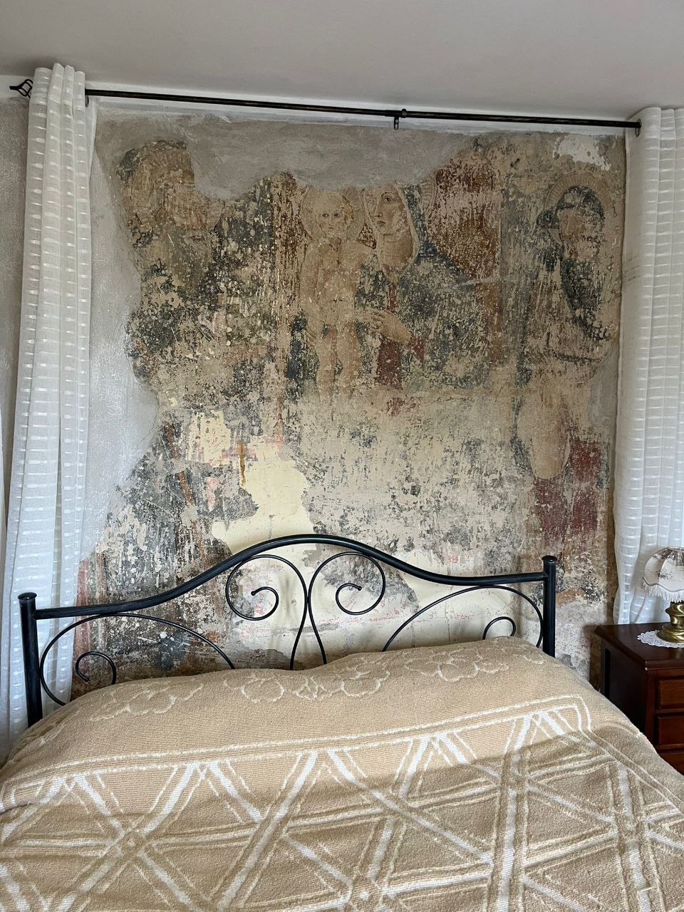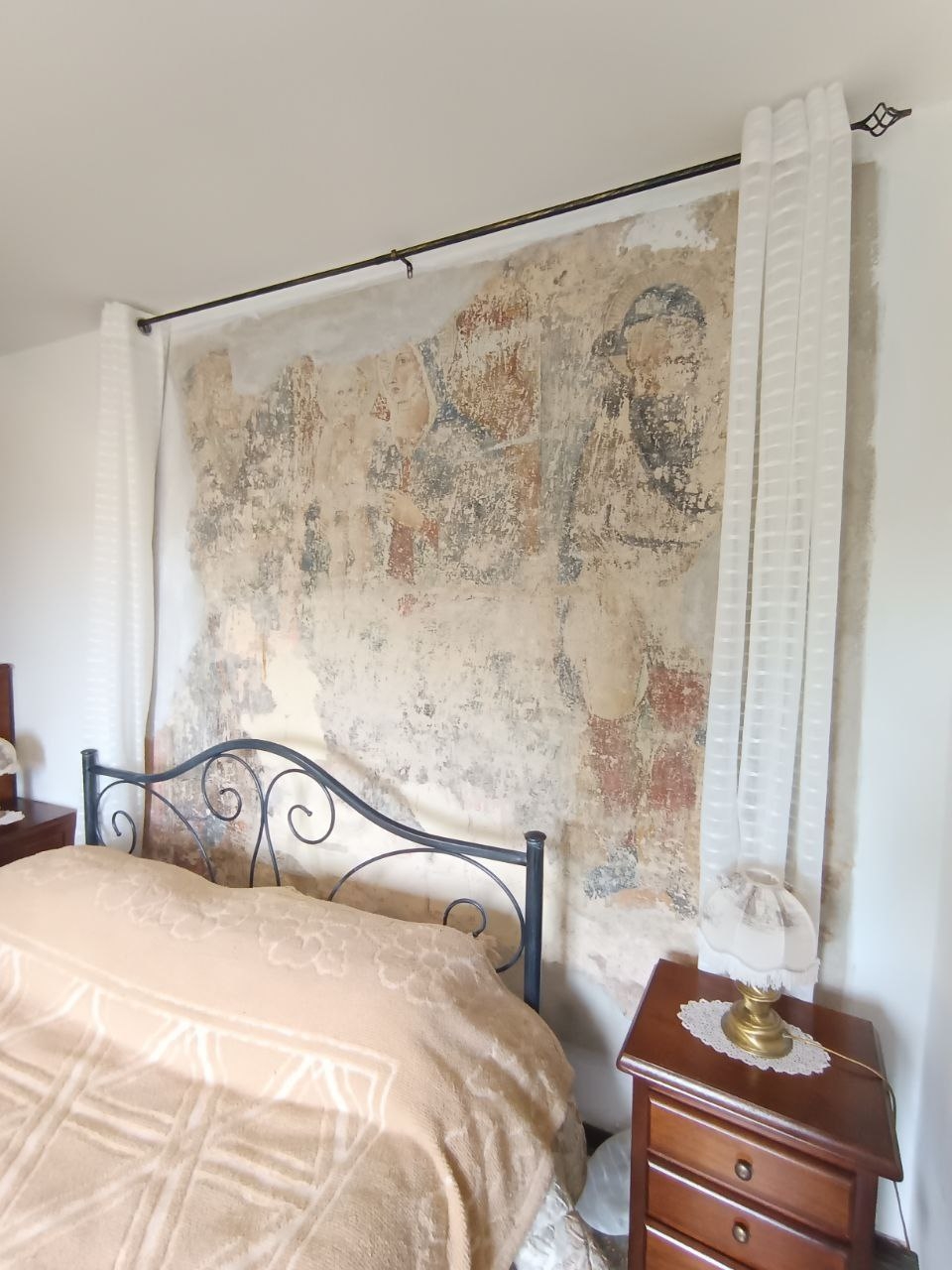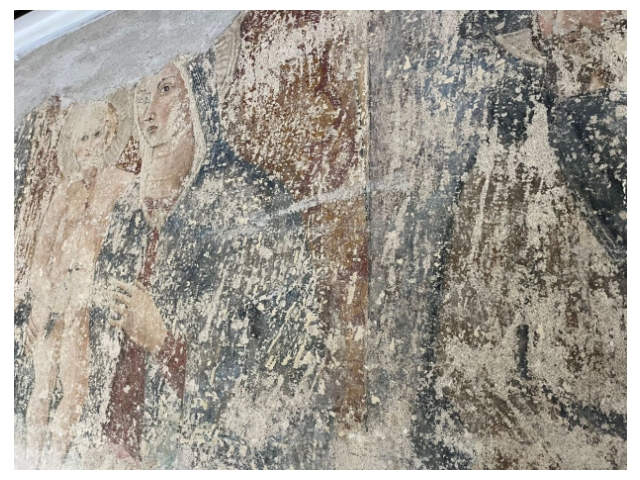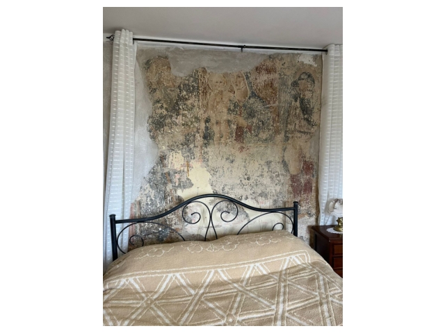 Elemento di straordinario pregio è la presenza, in una delle camere matrimoniali, di un affresco del XV secolo raffigurante la Madonna col Bambino con i Santi Antonio Abate e San Rocco, di dimensioni 215 x 242 cm, dettaglio unico che rende questa proprietà un’autentica rarità per appassionati e intenditori d’arte.